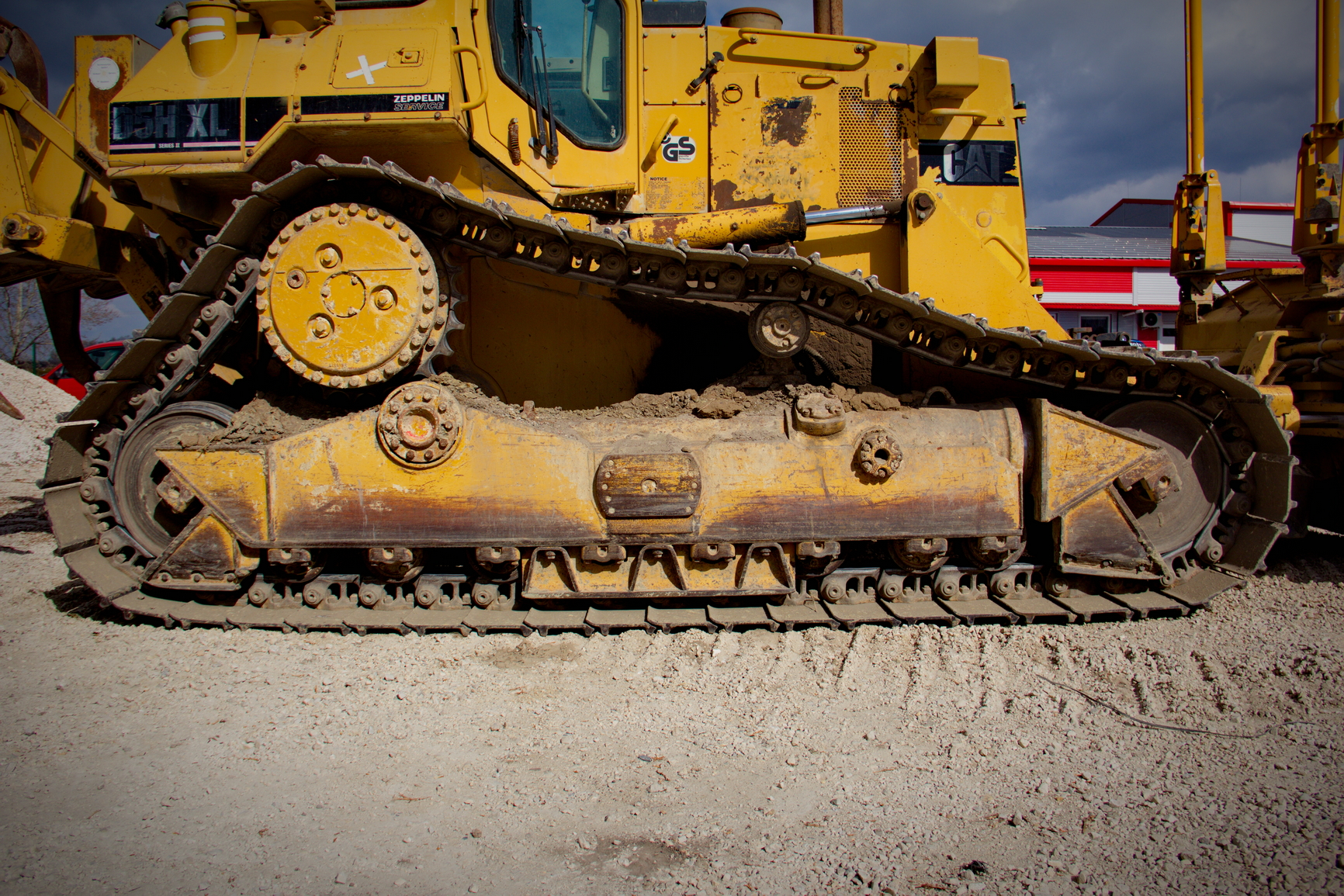 A lánctalpas Caterpillar dózer kiválóan alkalmas nehéz terepmunkákra, mint például földmunkák, tereprendezés és építkezési előkészítés.
